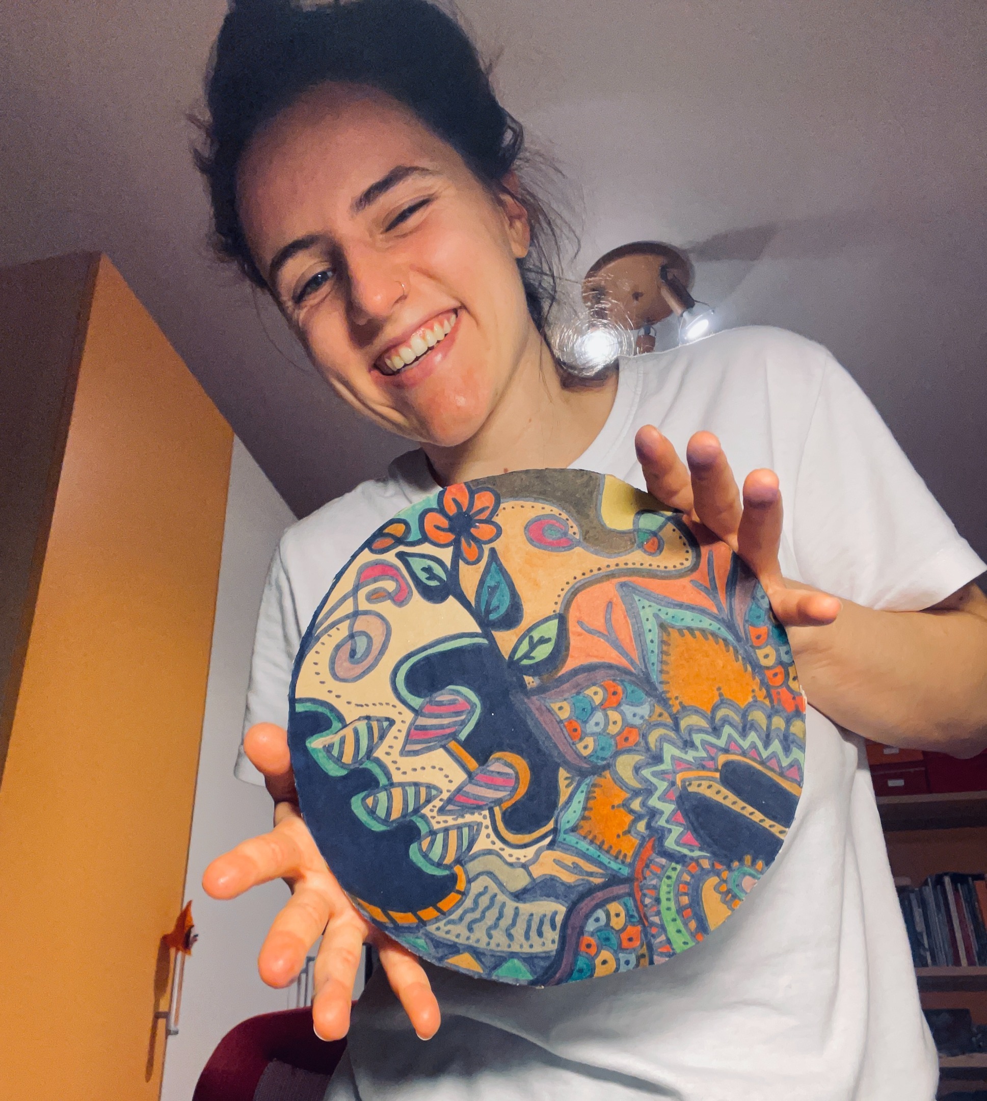 Quando gli altri impegni mi lasciano un po’ di respiro, mi dedico alla pittura. Nel tempo, grazie a ricerche e mostre, mi sono avvicinata alla corrente dell’espressionismo. Mi concentro soprattutto a disegnare volti, cercando di rappresentare situazioni e storie tramite le espressioni delle persone dipinte.